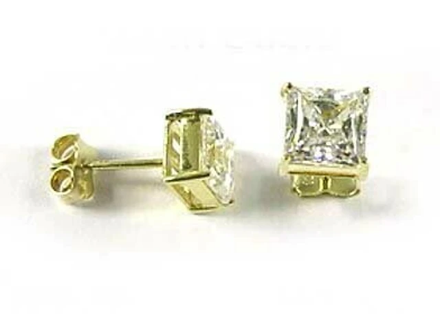 10K 6MM Gold Princess Square Cubic Stud Earrings