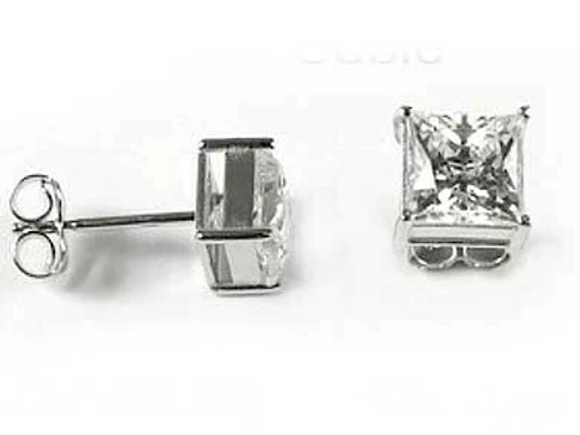 10K 6MM White Gold Princess Square Cubic Stud Earrings