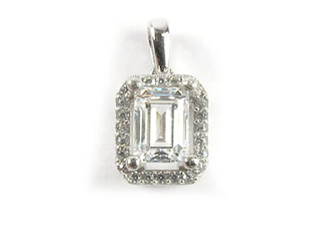 10K White Gold Emerald Cut Pendant