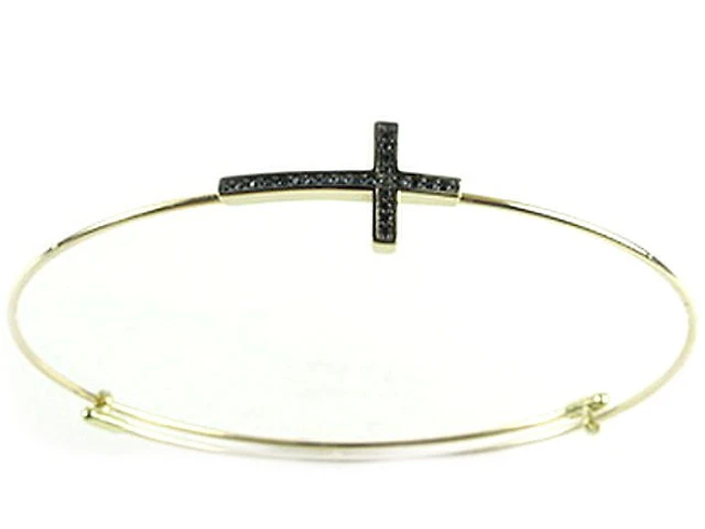 10K Yellow Gold Cross Bangle Bracelet C/Z