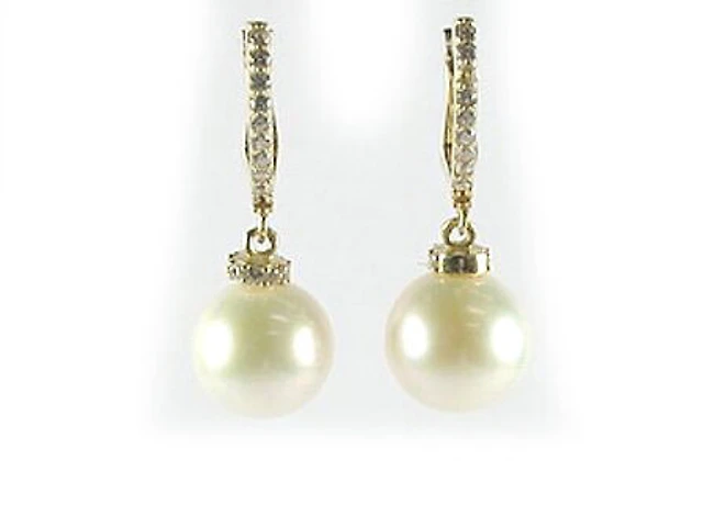 10K Yellow Gold Pearl C.Z Lever Back Earrings