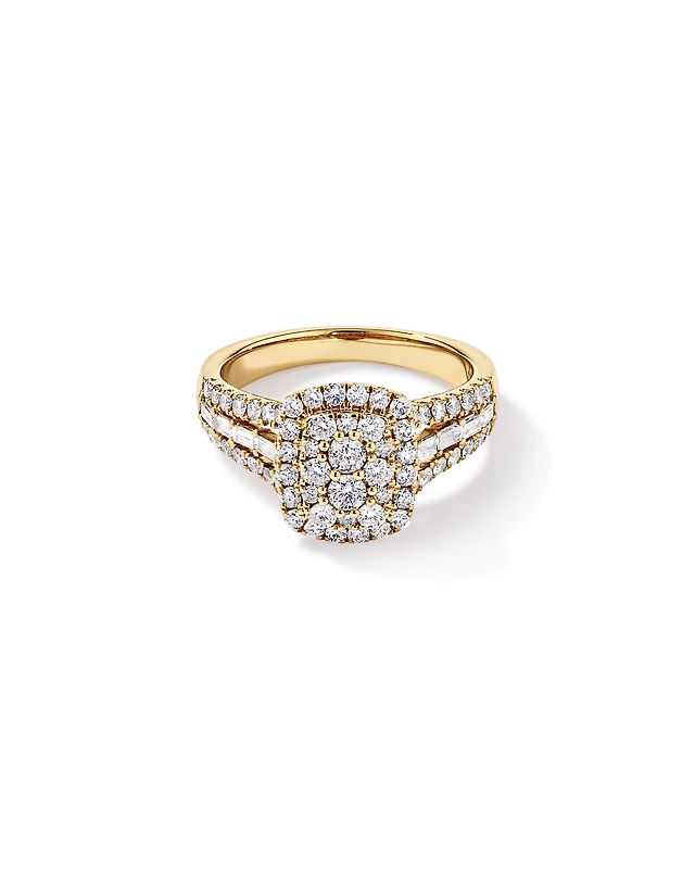 1.25 Carat TW Round Brilliant and Baguette Cluster Diamond Ring 14kt Yellow Gold
