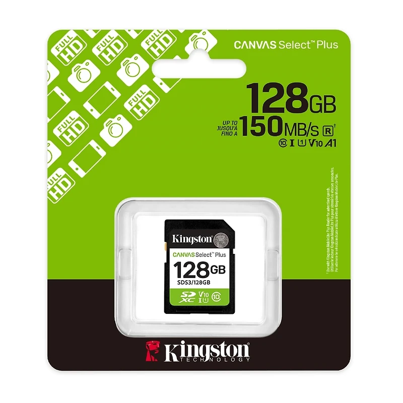 - Kingston’s Canvas Select Plus SD card is designed with reliable performance, speed, and durability for transferring and developing high-resolution photos or capturing and editing full HD videos. It can reach Class 10 UHS-I speeds up to 150MB/s1 for easy storage and quick transfers along with a Video Class 30 interface that can record cinematic Full HD video2. The Canvas Select Plus SD card is available in multiple capacities up to 1TB3 and with a lifetime warranty. 128GB-256GB: 150MB/s Read, UHS-I Speed Class, U1, V10