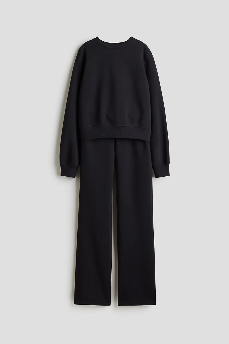 Lightweight set with a sweatshirt and matching sweatpant joggers with a soft, brushed inside. Sweatshirt with a round neckline, long sleeves, and ribbing at neckline, cuffs, and hem. Joggers with an elasticized, drawstring waistband and straight legs.