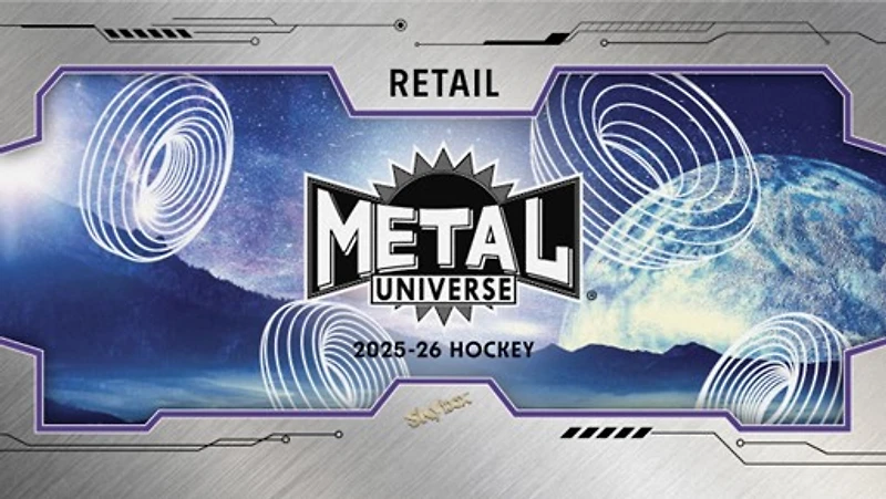 Product Configuration: 6 cards per pack, 5 packs per box. The 2025-26 Skybox Metal Universe Hockey product sports a 150-card Base Set designed to take collectors to another universe!