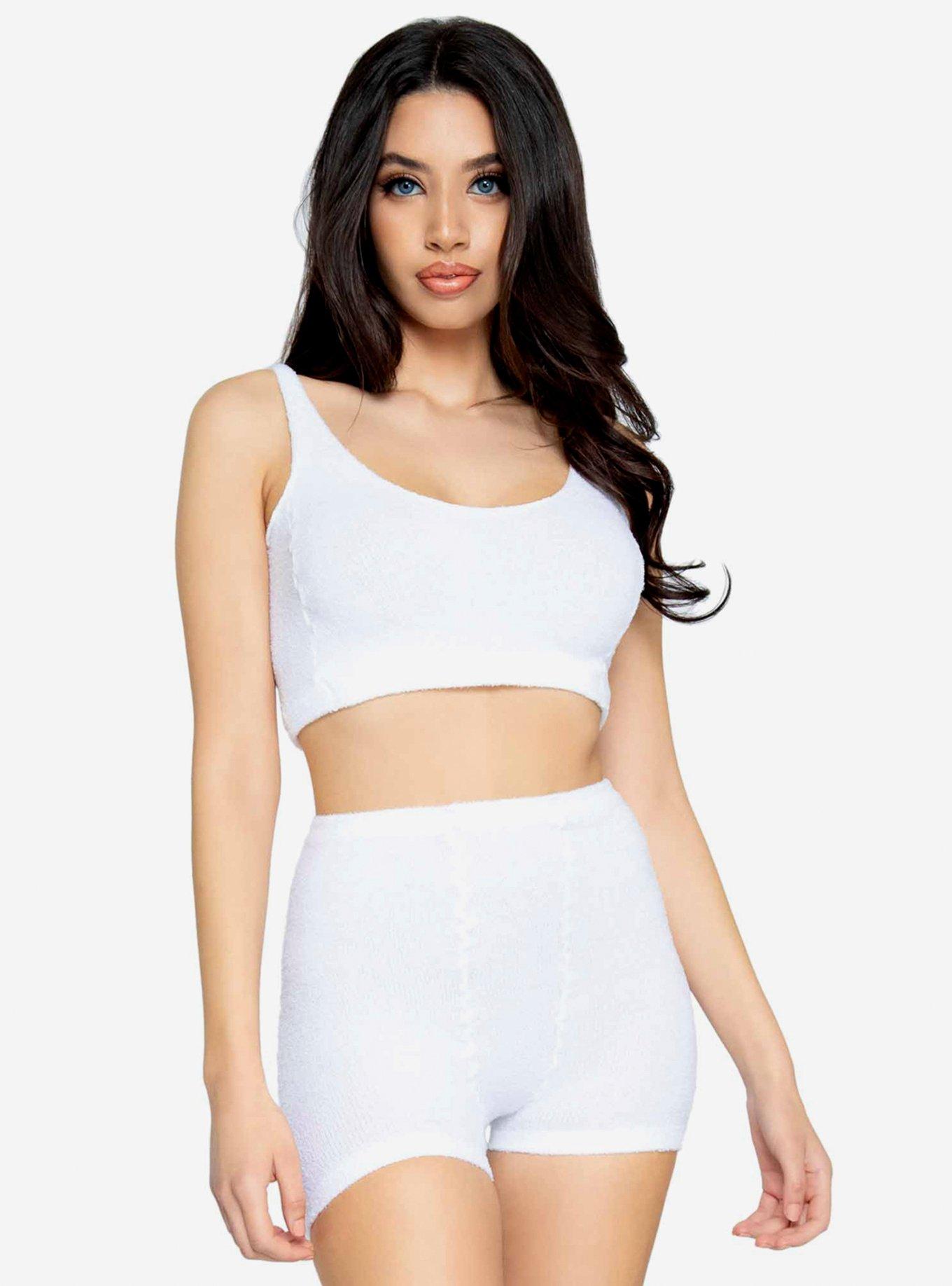 Ultra-soft cozy knit cropped tank, boyshort, and matching knee socks Item cannot be shipped to P.O. Boxes