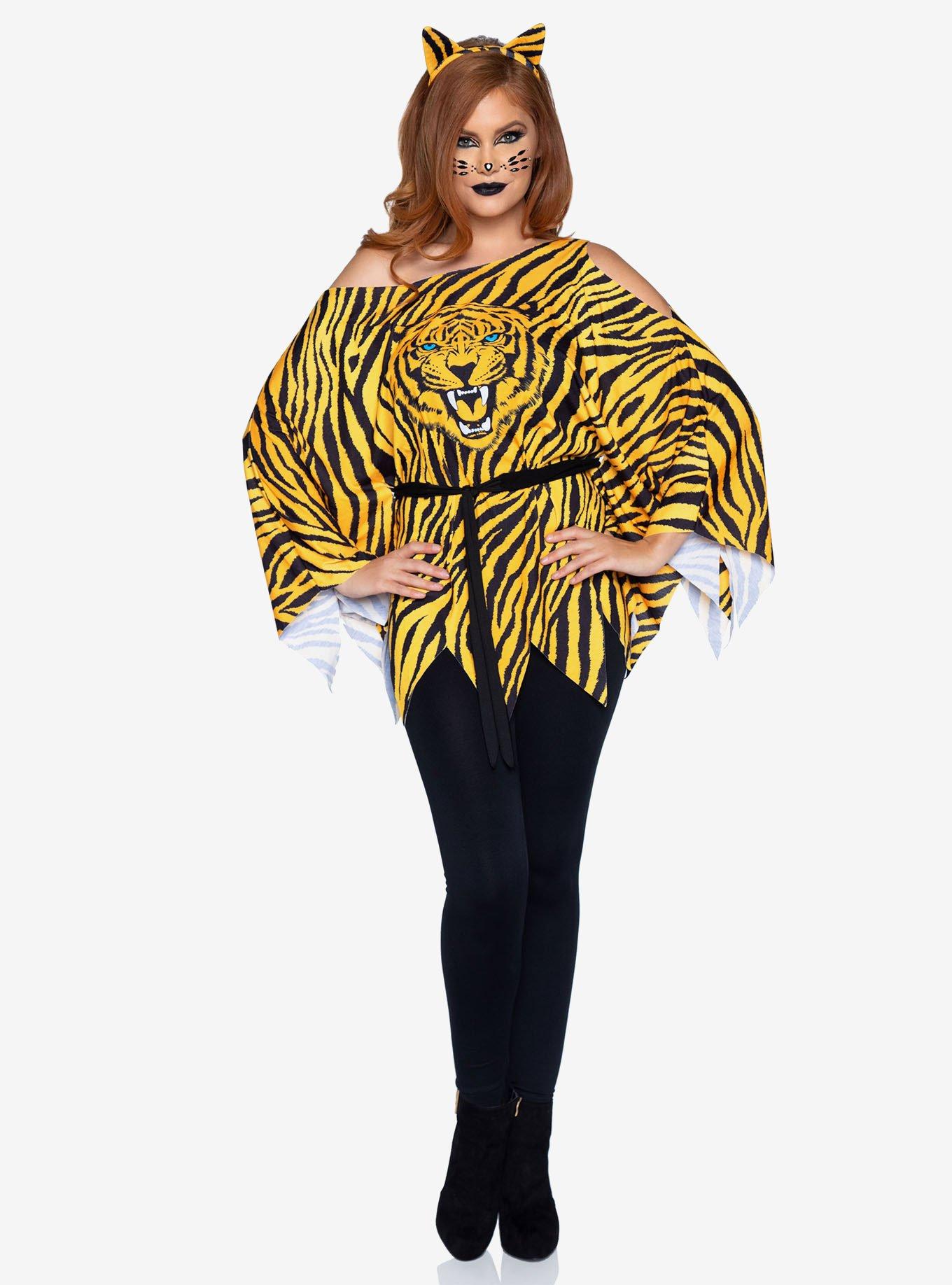 Includes tiger face poncho with cold shoulder sleeves, belt, and tiger ear headband. Item cannot be shipped to P.O. Boxes