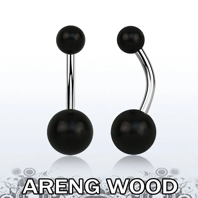 316L Surgical Steel Belly Button Ring with Black Areng Wood Balls