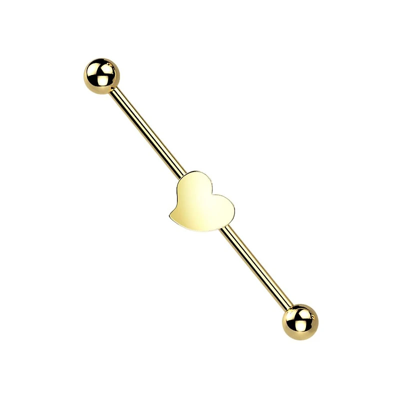 316L Surgical Steel Gold PVD Flat Fixed Heart Shape Industrial Barbell