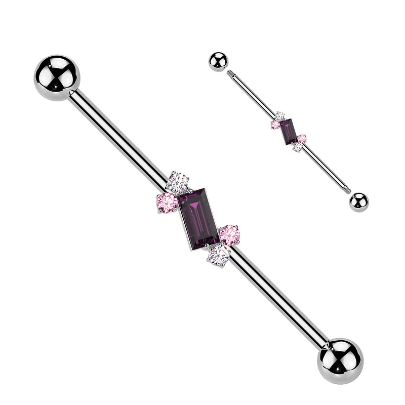 316L Surgical Steel Purple Baguette White & Pink Gem Cluster Industrial Barbell316L Surgical Steel Purple Baguette White & Pink Gem Cluster Industrial Barbell316L Surgical Steel Purple Baguette White & Pink Gem Cluster Industrial Barbell