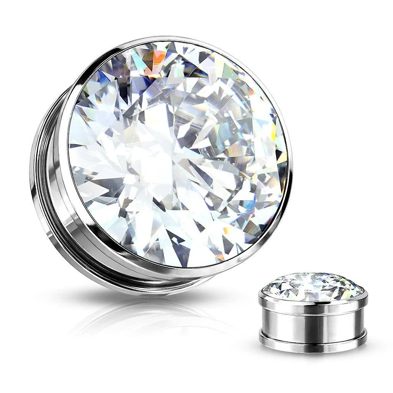 316L Surgical Steel Screw On Flat Gem Ear Plugs