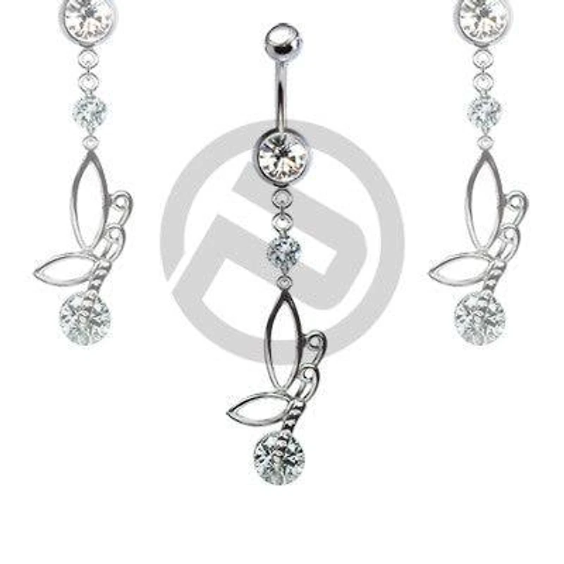 316L Surgical Steel White Angel Fairy Butterfly Dangling Belly Ring