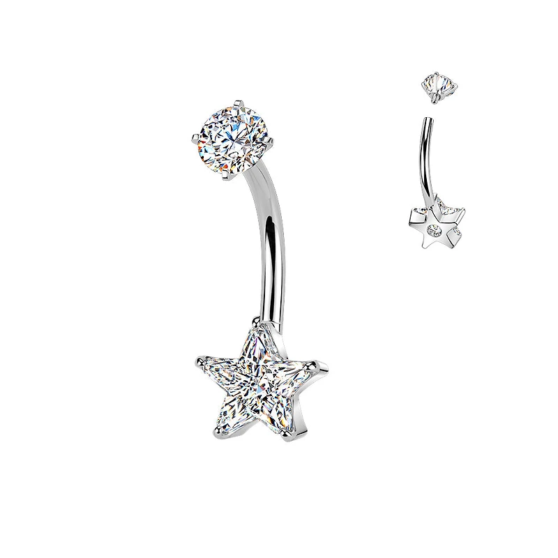316L Surgical Steel White CZ Star Internally Threaded Belly Ring