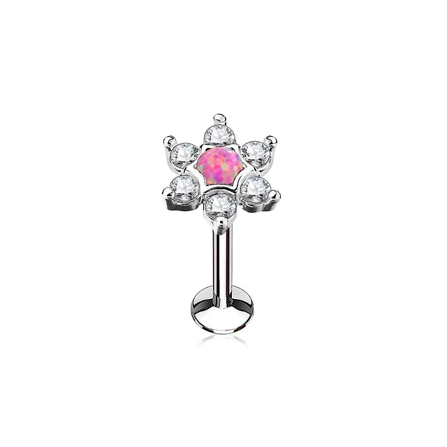 316L Surgical Steel White CZ with Pink Opal Flower Labret