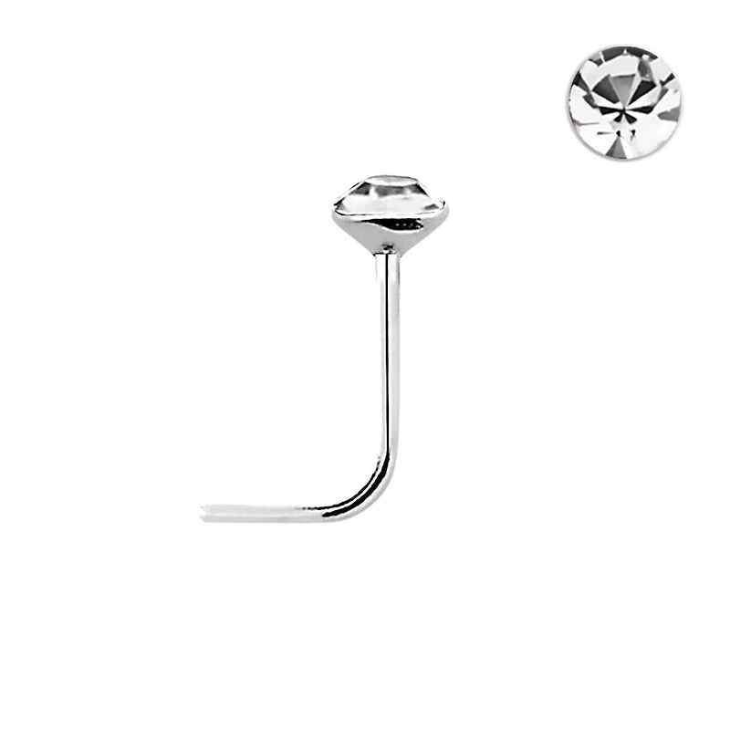 925 Sterling Silver 2.5mm Crystal L Shape Nose Pin Ring Stud