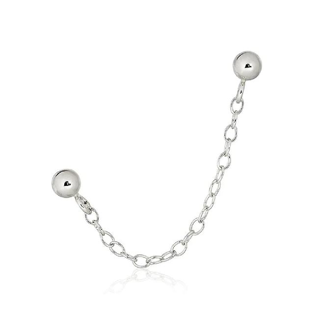 925 Sterling Silver Double Lobe Ball with Chain Minimal Stud Earring- 1 Piece