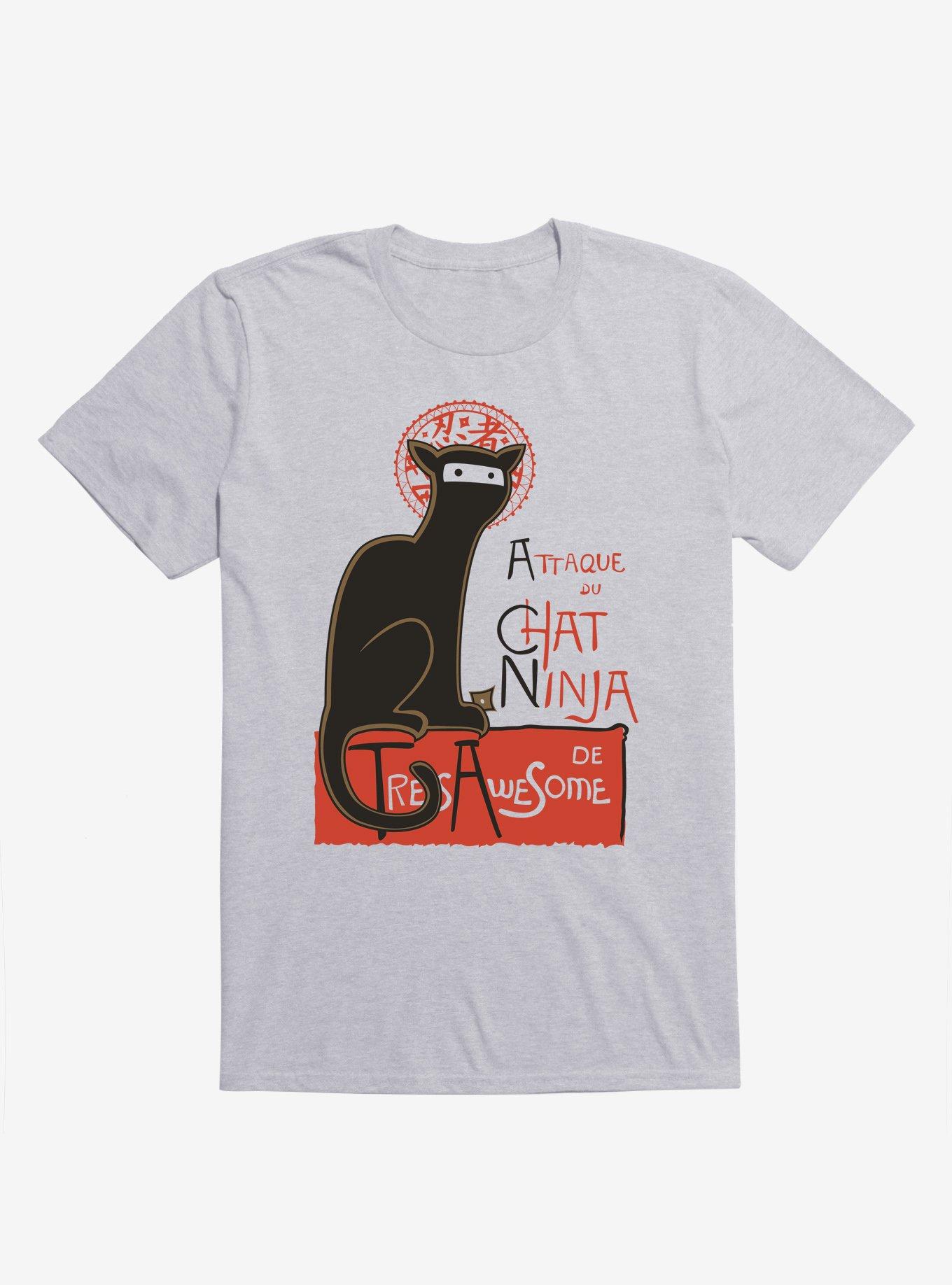 It's awesome when ninja cats attack. Very awesome. But when they do it in one of the most romantic languages in the world - on a shirt inspired by classic, old-timey French poster art - it's even better. This lightweight sport grey tee is proof. Officially licensed art from Kyle Walters.