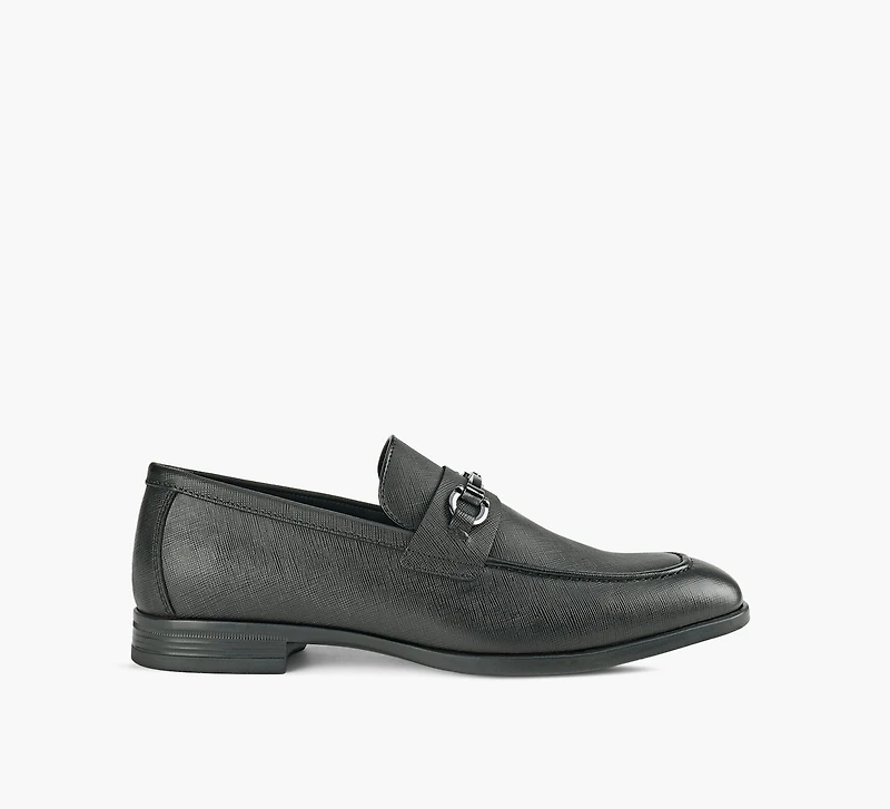 Chisel-toe dress loafers embellished by a vamp strap and metallic ornament. Acadia needs no formalities to cut a smart look.
