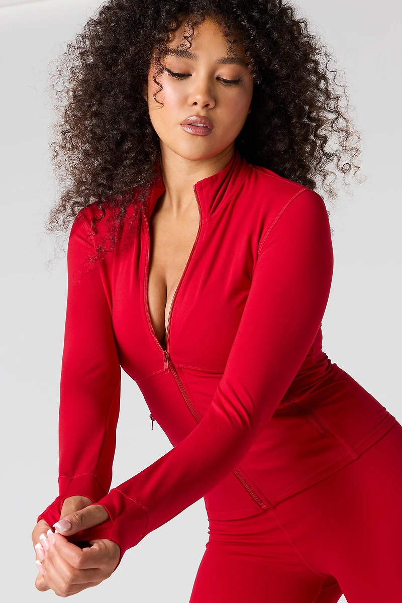Made from our premium performance fabric: soft, sculpting, and fully squat-proof with 4-way stretch for maximum flexibility. This active jacket features zipper front, mock neck, long sleeves, and zipper pockets. Pair with our Active Foldover Flare Pant to complete the look.