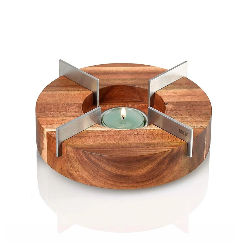 Keep your tea, soup, or coffee perfectly warm with the AdHoc Tuto Teapot Warmer, where function meets timeless design. Crafted from rich acacia wood and accented with sleek stainless steel, it adds a natural yet modern touch to any table. A single tealight fits neatly in the centre, gently radiating heat to keep your drink or meal at the ideal temperature.
