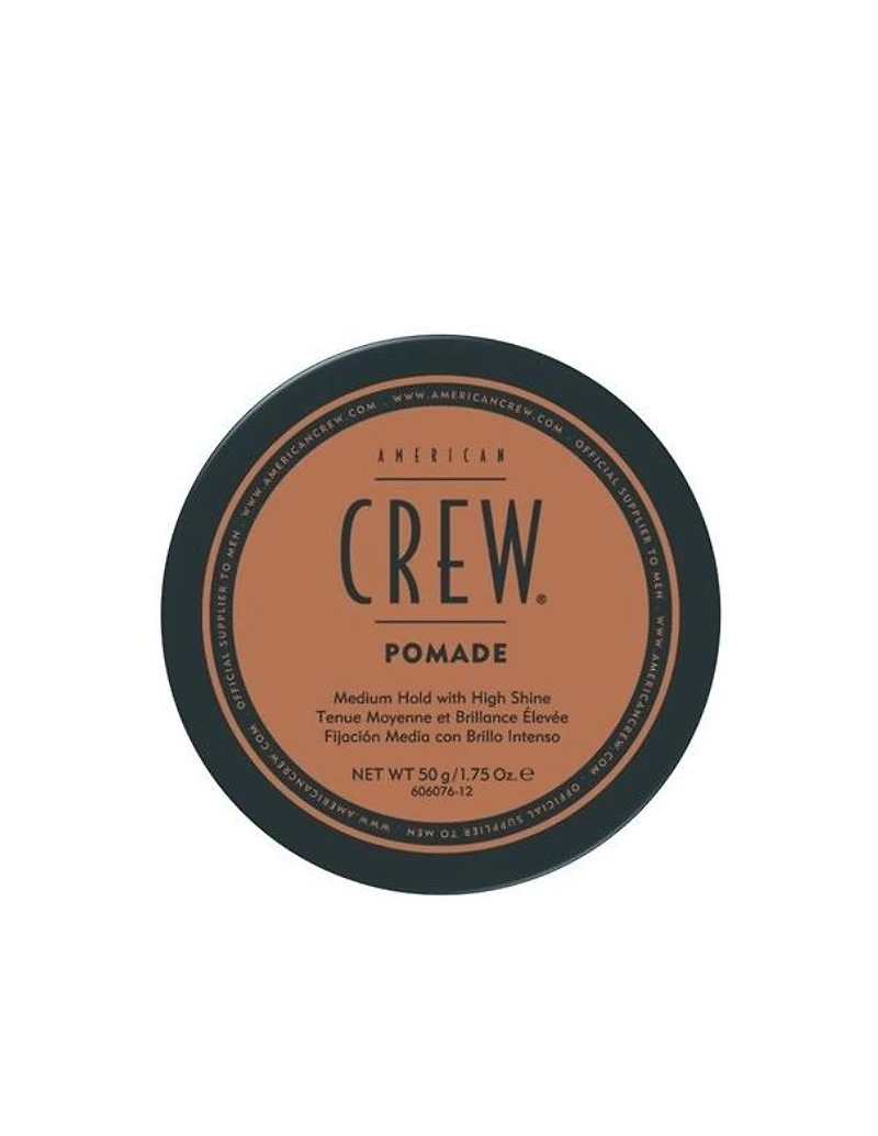 Pomade by American Crew is a medium hold, high shine styling product designed for slick and controlled hairstyles. The water based formula applies smoothly in hair, and is perfect for both straight and curly hair. Pomade gives your hair soft flexible hold that does not feel crisp to the touch. Pomade is also water soluble for easy product removal. Key Ingredients: Lanolin acts as a humectant, keeping hair hydrated while adding hold to your hair.Complex Strong Hold magnifies hold while keeping hair touchably soft. How To Apply: To apply Pomade to your hair, take a dime sized amount and rub between hands. Distribute evenly across damp hair to lock in moisture and flexible hold, or in dry hair for stronger hold with high shine. Use Pomade to make many contemporary styles like comb-overs and pompadours.