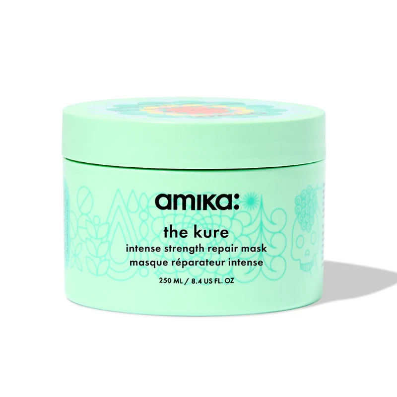 Amika The Kure Intense strength repair mask clinically proven to strengthen,reduce breakage + deliver major moisture in minutes to dry, damaged strands.