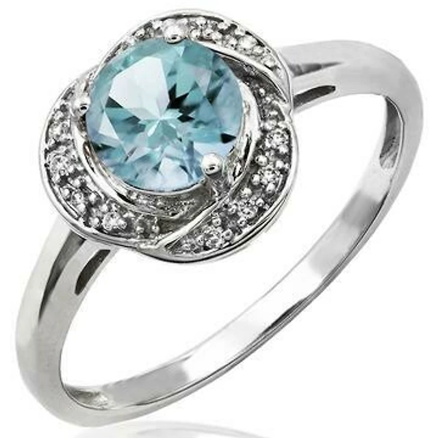 Halo Ring with Aquamarine and .09 Carat TW of Diamonds in 10kt White Gold