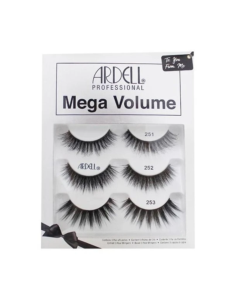 Ardell Mega Volume Stock Stuffer Le coffret Ardell Mega Volume Holiday 3 comprend 3 paires de faux-cils multicouches aux pointes effilées qui se fondent naturellement avec vos cils pour un effet 3D sublimé. Ces faux-cils multidimensionnels offrent un effet accrocheur maximal. Un cadeau idéal pour toutes les amatrices de faux-cils, ou un kit de voyage idéal pour vous-même ! Ce coffret cadeau rempli de cils contient le Mega Volume 251, le Mega Volume 252 et le Mega Volume 253.