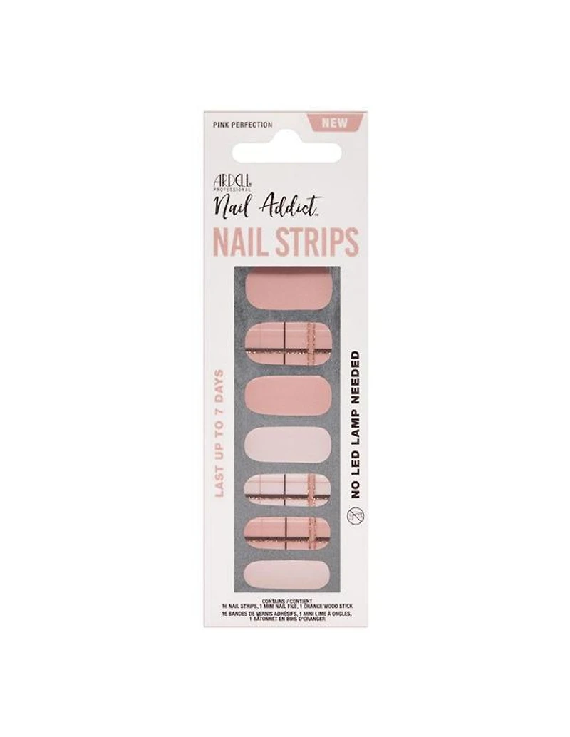 Ardell Nail Addict Nail Strips - Pink Perfection Get a quick kiss of color that’s flawless and mess-free! Made from real nail polish, Ardell Nail Addict Nail Strips in Kiss Me Quick are nail strips that are flexible, easy to apply, and can last up to 7 days. No LED/UV light or special tools required. Removal is fast, easy, and non-damaging to the natural nail. Quick-color nails, no time to waste!
