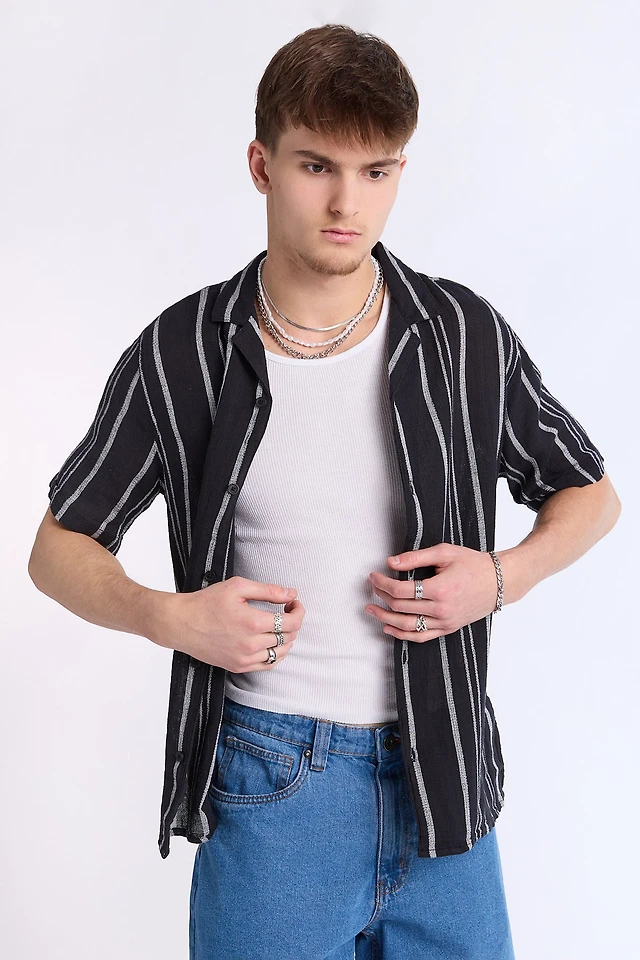 Arsenic Mens Multi Stripe Gauze Button-Up - /