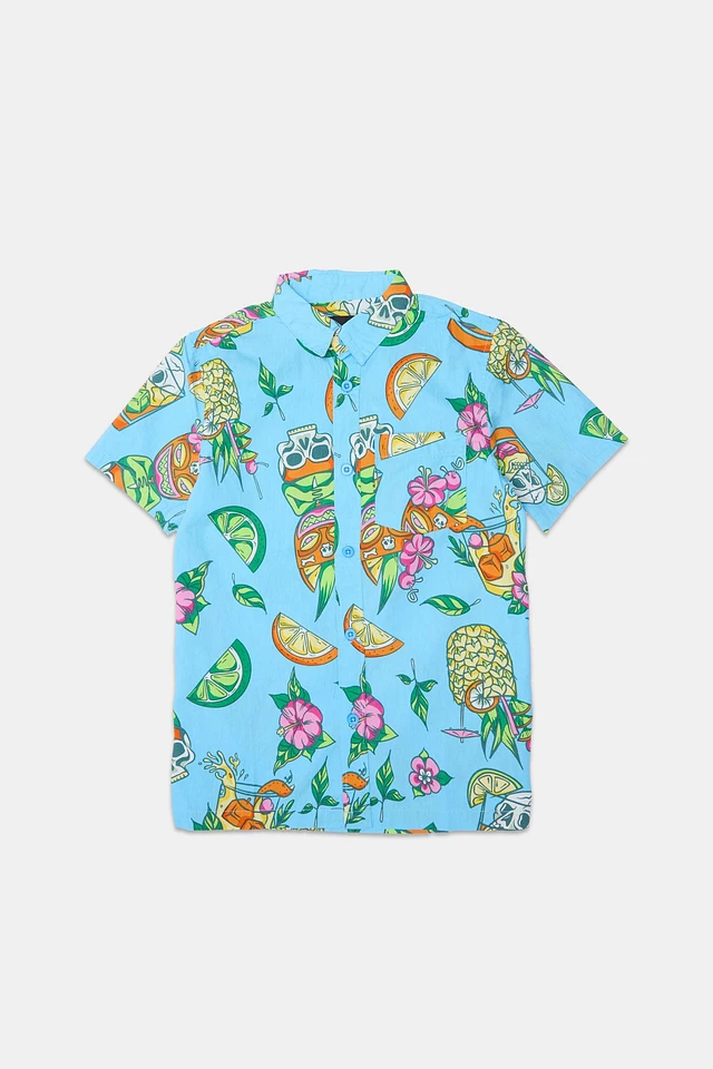 Arsenic Youth Tropical Skulls Button-Up - Blue /