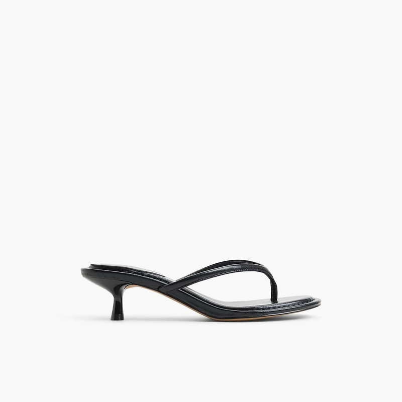 Ashaa's ready to be your new summer staple. Her smooth vegan leather finish, sleek thong strap and asymmetrical kitten heel create a sexy, feminine silhouette with a modern twist. Easy to dress up or down all season long. Finished with B.E.D Foam™ comfort technology.