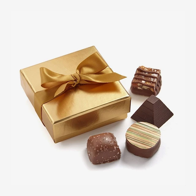 Assorted Chocolate Gold Favour, Ivory Ribbon, 4 pc