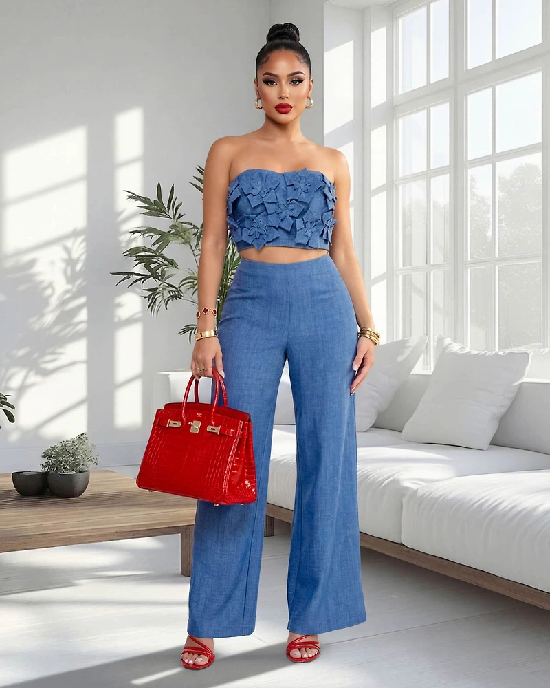Avendria Blue Appliqué Crop Top & Pants Set in Brampton, ON