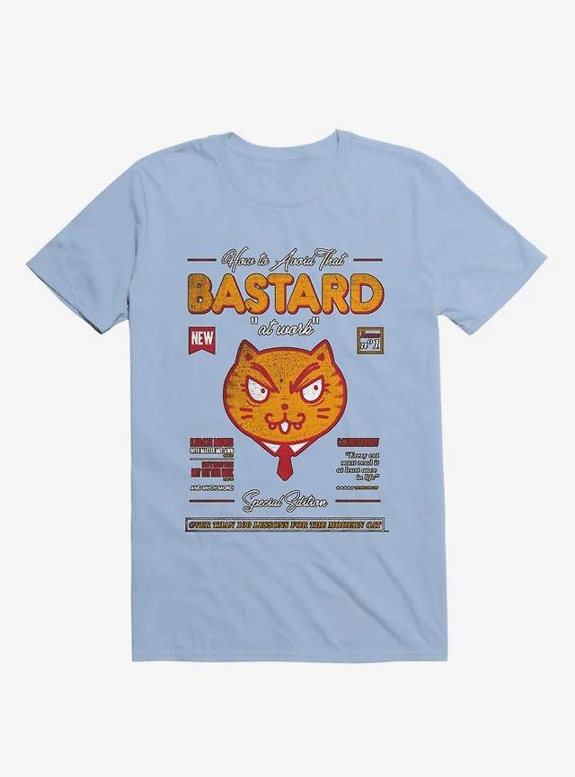 Avoid That Bastard At Work Cat Magazine Light Blue T-Shirt