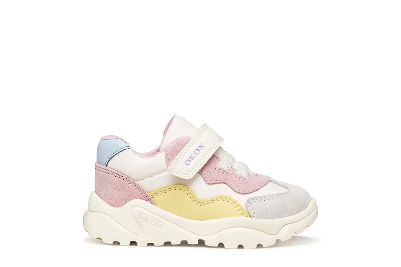 Girl’s low-cut sneaker with a contemporary running-shoe design. Ciufciuf features an upper in pale ivory and deep pink, and will be the perfect way to round off children's casual styling with a modern touch. Crafted from nylon and suede, this breathable piece of footwear rests on an ultra-light outsole and guarantees an excellent cushioning effect.