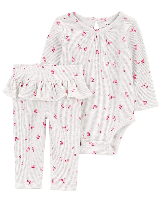 Baby 2-Piece Floral Valentine's Day Bodysuit Pant Set