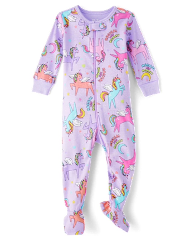 Baby And Toddler Girls Unicorn Snug Fit Cotton Footed One Piece Pajamas