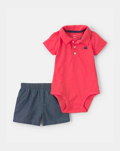 Baby Boy 2-Piece Polo Shirt & Short Set - Orange/Blue