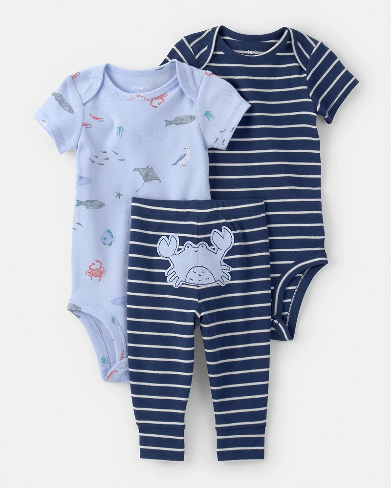Baby Boy 3-Piece Sea Animal Bodysuits & Pant Set - Blue