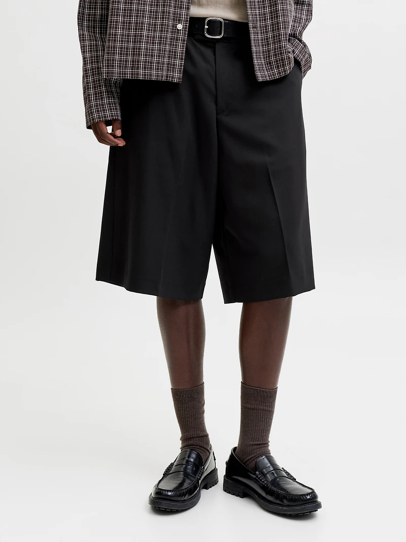 Elevate your closet with a pair of chino shorts. This timeless staple is the smart-casual, warm-weather alternative to denim shorts. Woven fabric is a strong and durable material that does not stretch like knitted fabrics. - Product Type : Chino shorts - Closure : Zipper fly - Pockets : Back pockets, Front pockets - Waist : High waist - Length/size : Knee length - Extra details : Belt loops - Fit : Baggy Fit