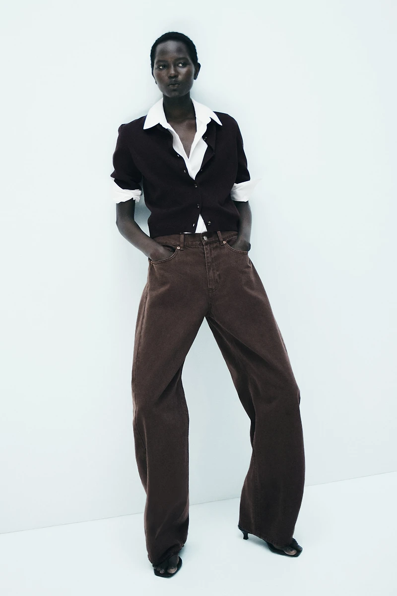 5-pocket jeans in rigid cotton denim that feels firm at first, softening and relaxing with wear. Loose fit from hip to thigh. Regular waist, zip fly with button, and voluminous, curved legs, tapered to hems. Regular length, designed to fall at top of foot with little or no stacking.