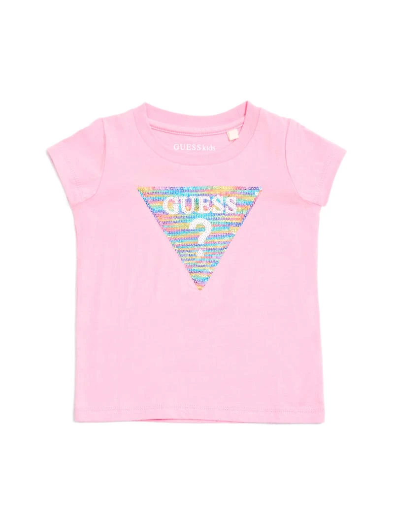 She'll sparkle in this knit tee, featuring a front sequin logo triangle and ribbed trim.