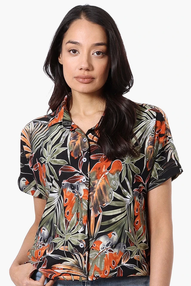 Beecher Brook Leaf Pattern Cropped Short Sleeve Blouse