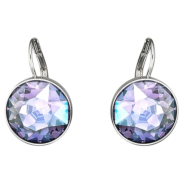 Bella drop earrings, Round cut, Purple, Rhodium plated by SWAROVSKI