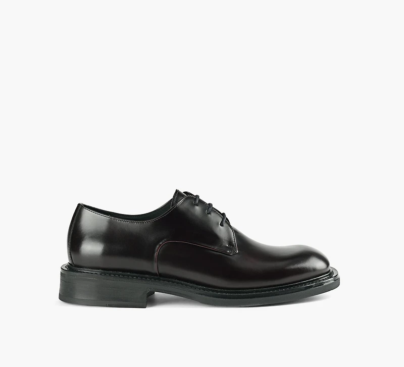 - Classic derby design with a polished finish