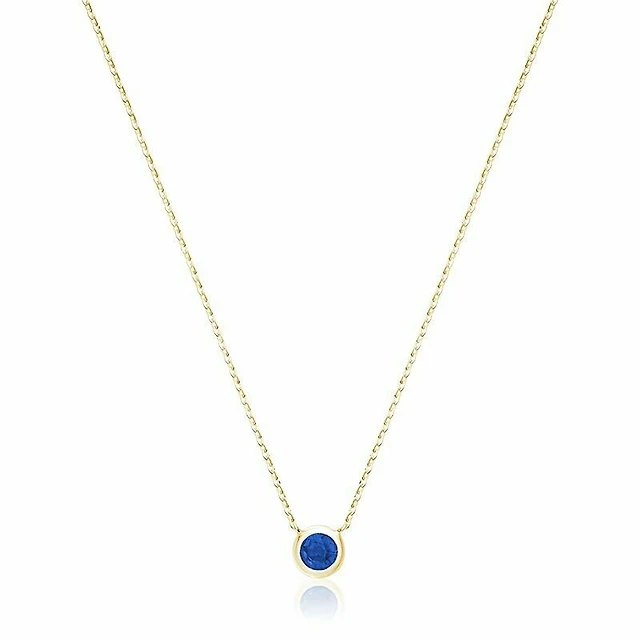 Bezel Set Blue Sapphire Necklace Yellow Gold