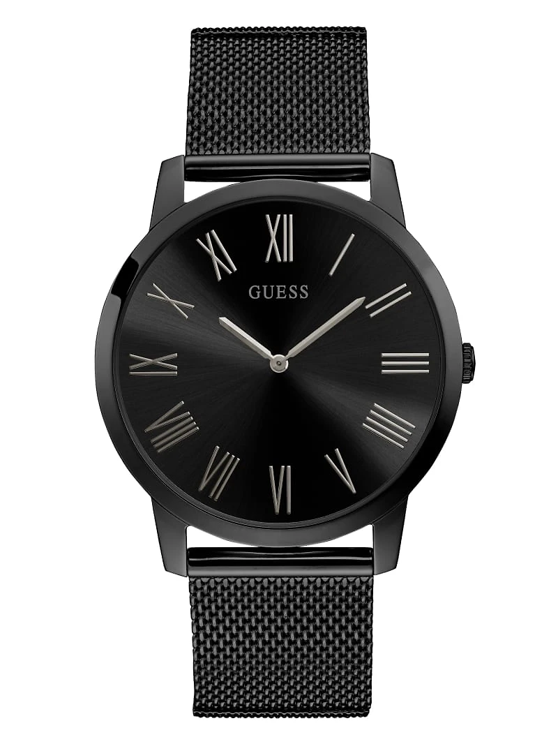 Keep your look sophisticated in this classic analog watch featuring a mesh strap and sleek black dial.
