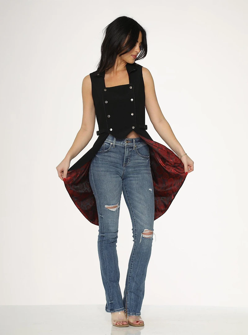 Black Red Rose Vest Size Guide: 4— 6— 8—10—12—14—16 XS—S—M—L—XL—2XL—3XL Item cannot be shipped to P.O. Boxes