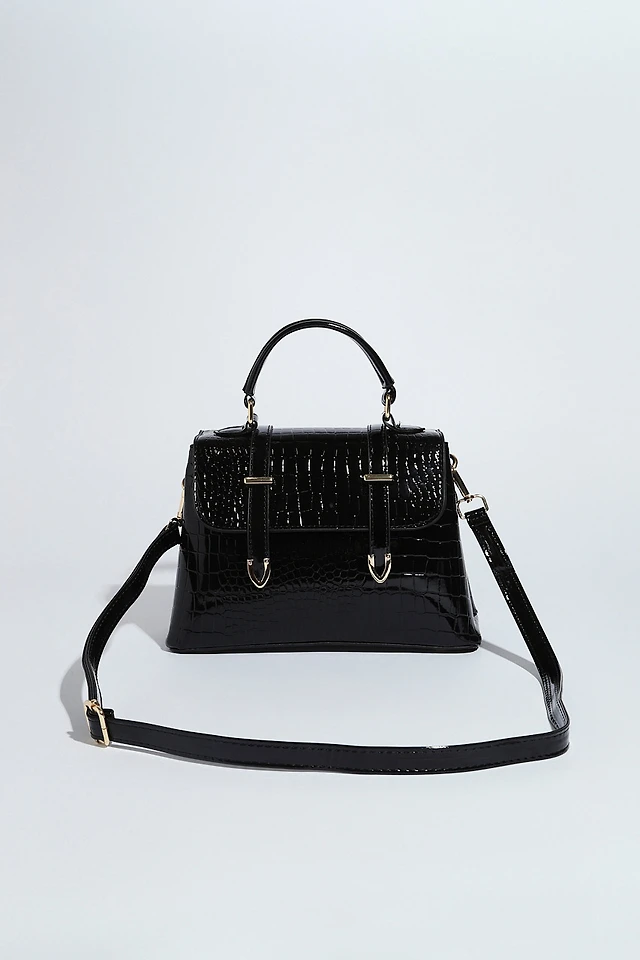 Black Top Closure Croco Handbag
